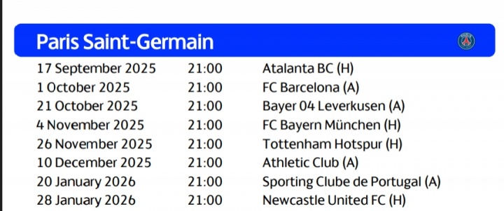 巴黎欧冠赛程:10月2日客战巴萨 第4轮&第5轮连战拜仁、热刺